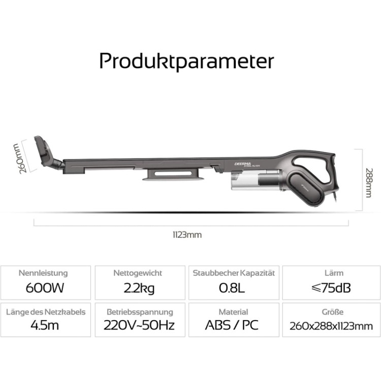 جاروبرقی درما شیائومی Deerma DX700S در دو حالت دسته و عمودی قابل استفاده است ؛ قدرت موتور این جاروبرقی 600 وات و مکش آن 16 هزار پاسکال است .