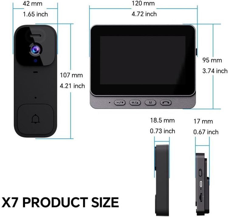زنگ درب تصویری هوشمند بیسیم با مانیتور ۴.۳ اینچی مدل X7 – بدون نیاز به WiFi