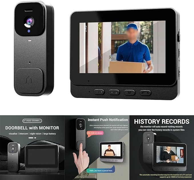 امنیت و راحتی را با زنگ درب تصویری هوشمند و بی سیم به خانه خود بیاورید . این مجموعه کامل ، شامل یک زنگ درب دوربین دار و یک مانیتور داخلی قابل حمل 4.3 اینچی است که به شما اجازه میدهد به راحتی و بدون نیاز به نزدیک شدن به درب ، بازدیدکنندگان را مشاهد کرده و با آنها صحبت کنید . ویژگی منحصر به فرد این دستگاه ، اتصال بی سیم مستقیم و بدون نیاز به شبکه WiFi است که نصب و استفاده از آن را در هر خانه ای فوق العاده آسان میکند .
